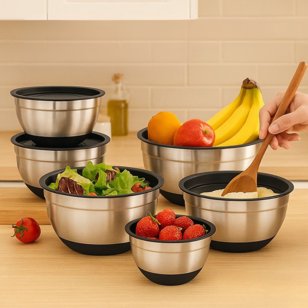Hergestellt aus robustem, rostfreiem Edelstahl, behalten sie ihren Glanz und ihre Stabilität: selbst nach unzähligen Einsätzen in deiner Küche. So sparst du Geld, reduzierst Abfall und tust gleichzeitig der Umwelt etwas Gutes.