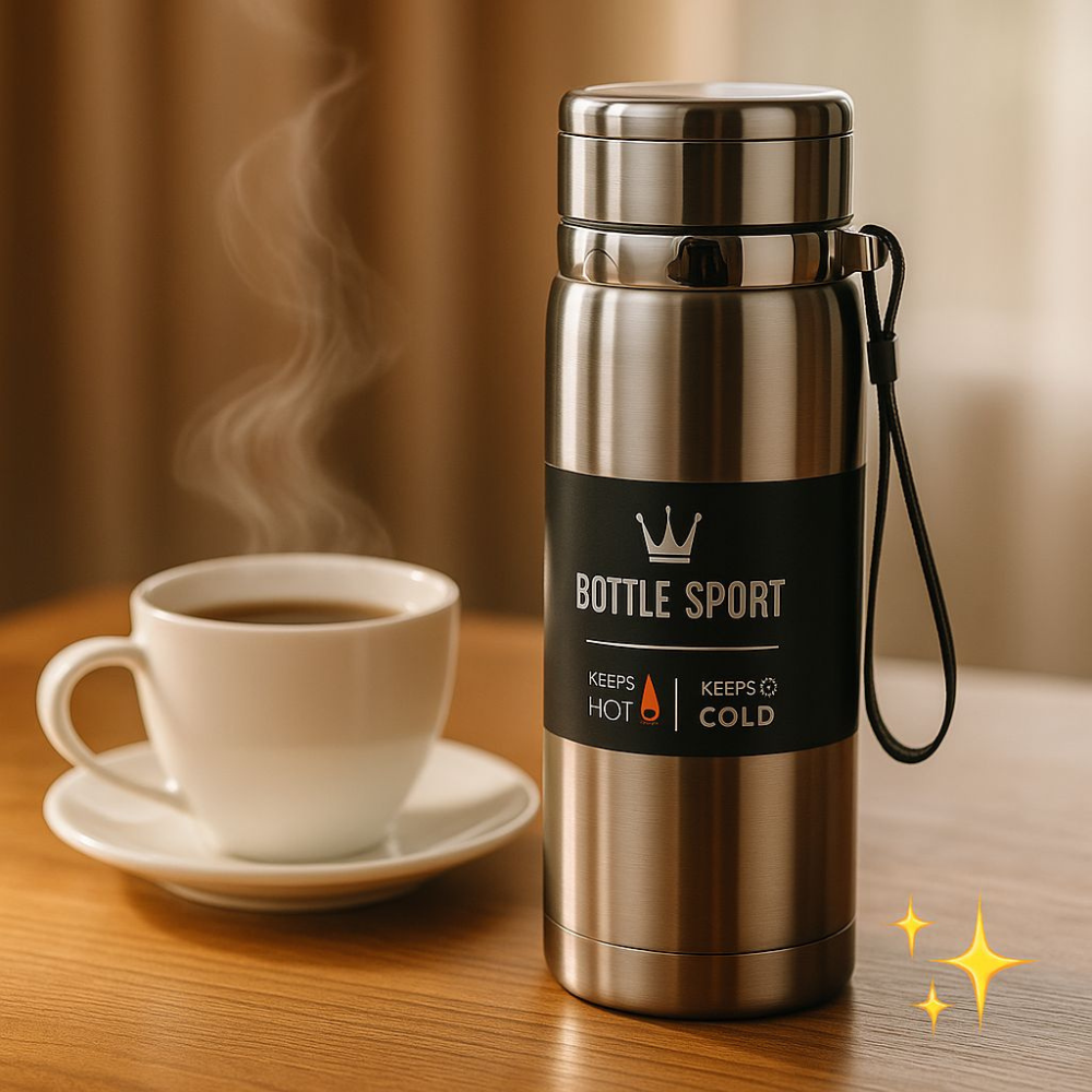 Ob im Büro, auf Reisen, beim Spor oder in der Natur, diese Thermosflasche ist dein zuverlässiger Begleiteter für jeden Tag. Gleichzeitig triffst du eine nachhaltige Entscheidung, indem du auf Einwegflaschen verzichtest.