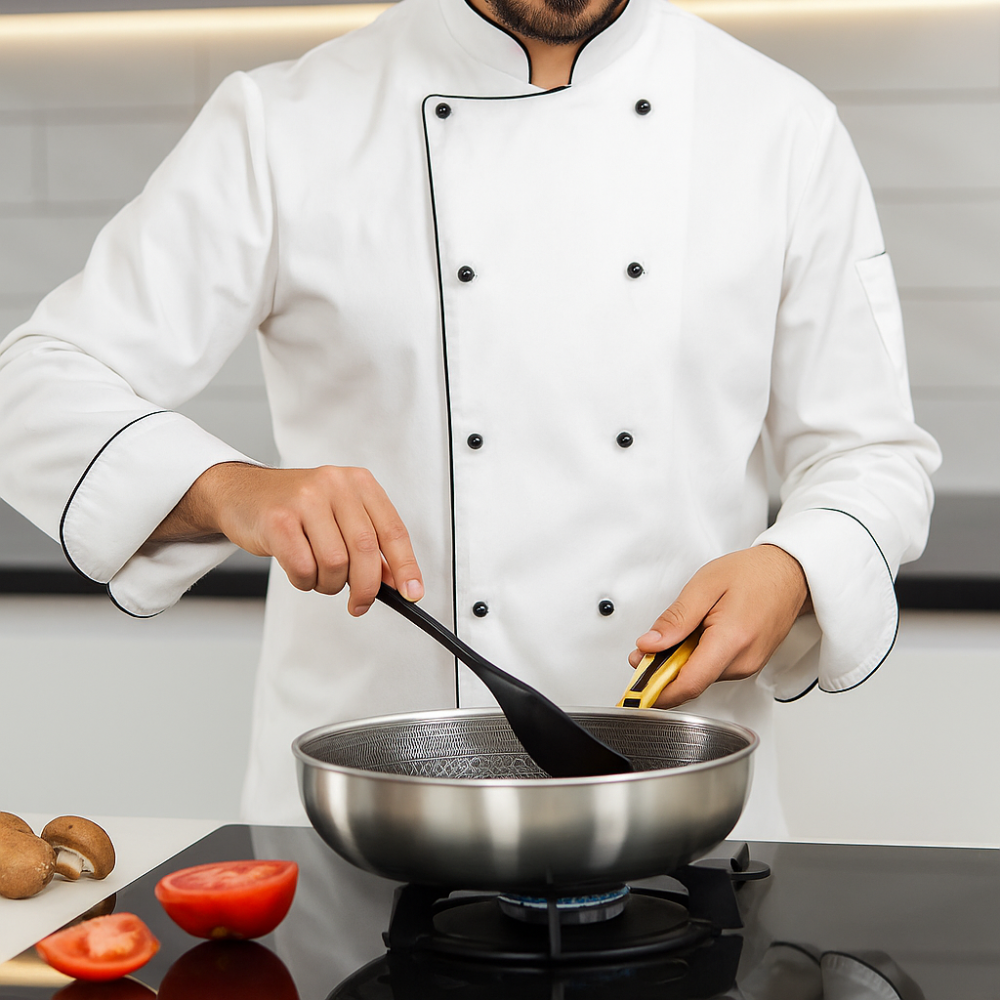 Im Gegensatz zu beschichteten Pfannen gelangt hier kein Mikroplastik in Ihr Essen. So bleibt der natürliche Geschmack Ihrer Speisen erhalten und Ihre Familie geschützt.