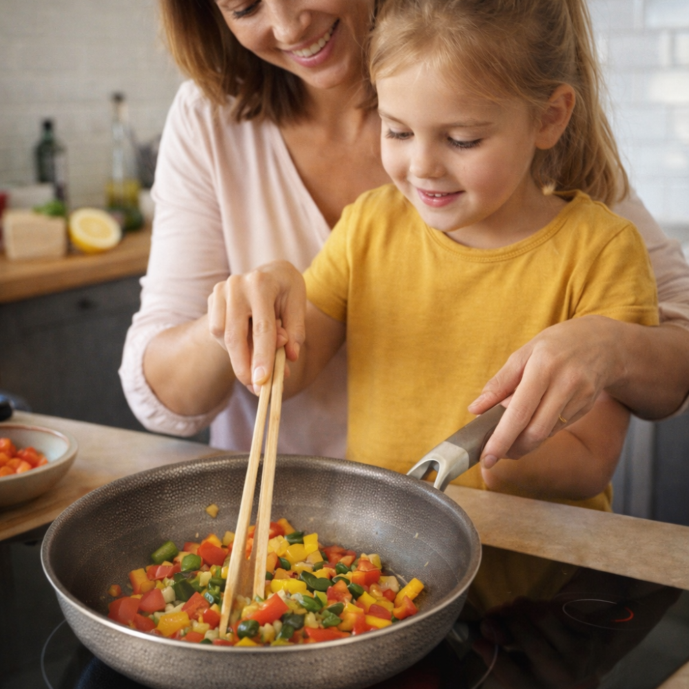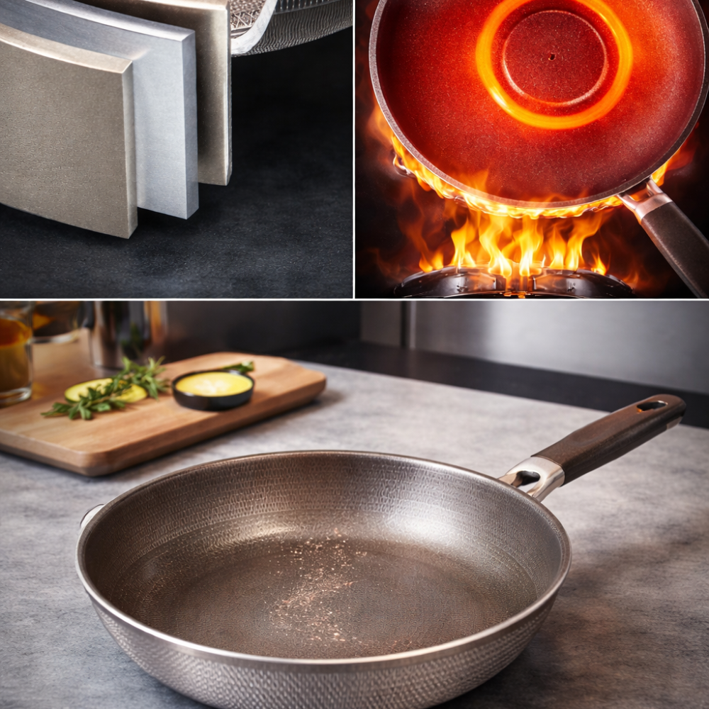 Vergiss Pfannen, die nach wenigen Wochen zerkratzen oder ihr Versprechen nicht halten. Diese Titan-Edelstahl -Pfanne wurde für Menschen entwickelt, die täglich kochen für Familien, Genießer und alle, die Qualität spüren wollen.
